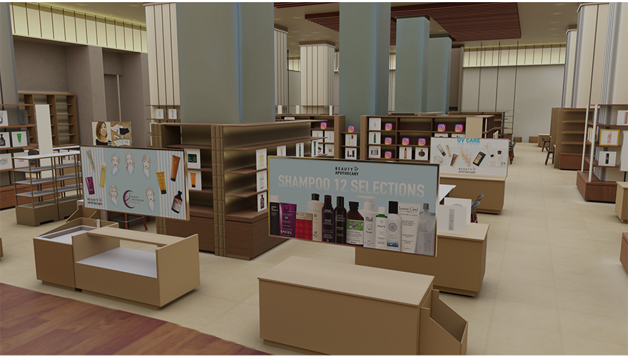 仮想伊勢丹1階はアバターファッションを展示。シーズンアイテムからコスプレ、ヘアアイテムやシューズなど幅広く取り揃えています。